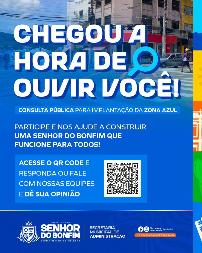A Prefeitura de Senhor do Bonfim, por meio da Secretaria de Administração, iniciou uma consulta pública para ouvir a população sobre a proposta de reimplantação do sistema de estacionamento rotativo Zona Azul na cidade. A iniciativa atende ao encaminhamento da Audiência Pública realizada pela gestão municipal no dia 28 de março, ocasião em que ficou […]